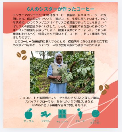 『Eiwa Café -ya tatu-』のコーヒー豆「ンゴロンゴロ」はタンザニアのンゴロンゴロ修道院コーヒー園で栽培されたものです。売上の一部は、修道院が経営している全寮制女子校に通っている子どもたちの教育支援をしています。この豆を使った『Eiwa Café -ya tatu-』を楽しむことが、子どもたちの主体的な学び・自由な進路選択の実現、そして、「SDGs4:質の高い教育をみんなに」の実現の第一歩となるのです。あなたも一杯のコーヒーから、SDGsに協力しませんか?